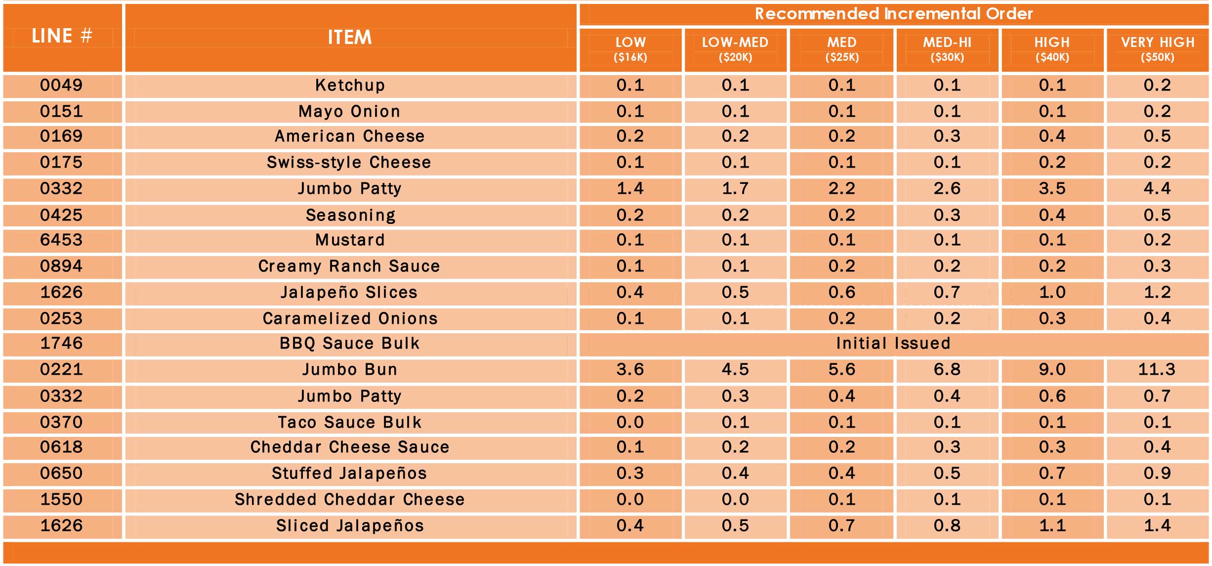 - All finger foods have “Each” as the UNIT, making it easier to train new employees and for existing employees to know exactly how many to hold
